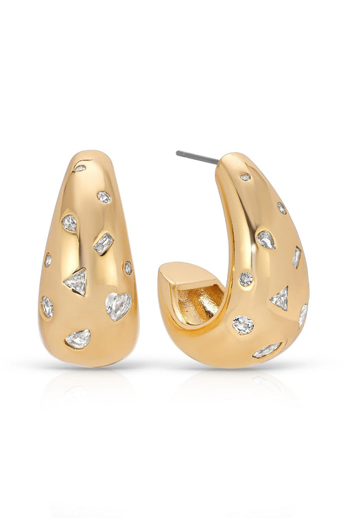Bezel Crystal Crescent Huggie Hoops
